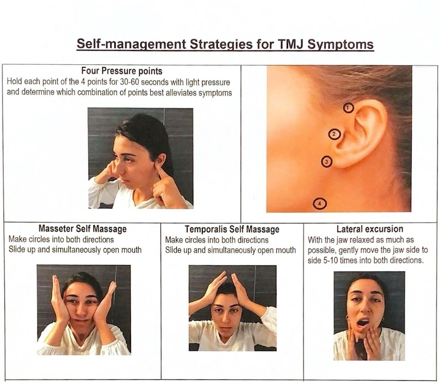 Having Problems with your TMJ? Try some of these Self-management Strategies below, and check out the Do’s and Don’ts for TMJ Symptoms below.